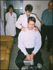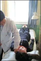 In Jinan, we observed various types of physical therapy including electro-acupuncture and upper extremity strengthening exercises on a hemiplegic’s left arm. Electro-acupuncture involves a combination of acupuncture and electrical stimulation. A physician places the acupuncture needles at pressure points and then leads from an e-stimulation unit are attached to each needle. (Although this was not a trip where we were gathering outcome data, the study would be interesting.)