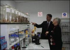 | Co-authors Rob Haley, PhD, MBA, MHS (left), and Kerry N. Dunning, MHA, MSH, CPAR, tour the laboratory where herbs used in traditional Chinese medicine are mixed to address the patient’s diagnosis. |