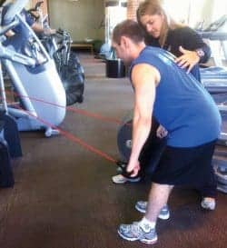 Rebecca King, a lead health and fitness instructor at the East Jefferson General Hospital Wellness Center, incorporates the use of therapy balls with athletes to assist in addressing weak lumbar muscles and enhancing core stability.