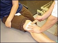 | Richard E. Joreitz, PT, DPT, ATC, Department of Physical Therapy, UPMC Center for Sports Medicine, Pittsburgh, taping a client’s knee. |