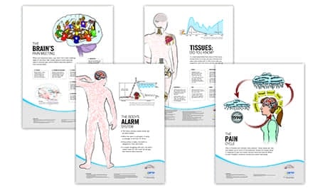 A set of four posters created in partnership with physical therapist and author Adriaan Louw are illustrated in such a way to communicate the principles behind the neuroscience of pain.