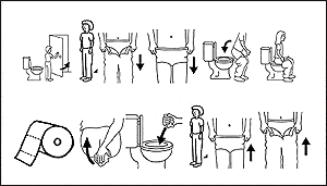 To finish, dispose of any waste in the garbage can (not the toilet). Remember that it will take you over 1,000 trials to learn this new skill—so be patient with yourself! |